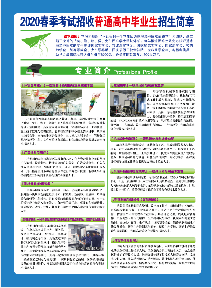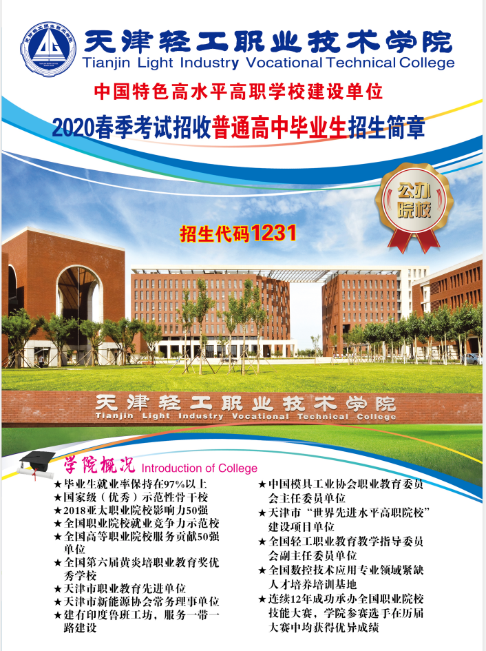 原标题:2020年天津轻工职业技术学院春季考试招收普通高中毕业生招生简章(图)