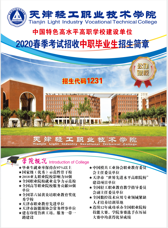 原标题:2020年天津轻工职业技术学院春季考试招收中职毕业生招生简章(图)