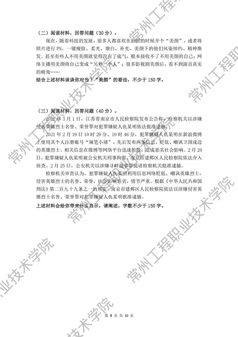 原标题:2021年常州工程职业技术学院提前招生职业倾向及综合素质测试模拟卷及答案(图)