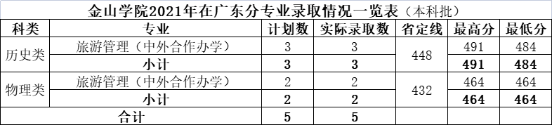 2021年福建农林大学金山学院广东分专业录取情况一览表(图)