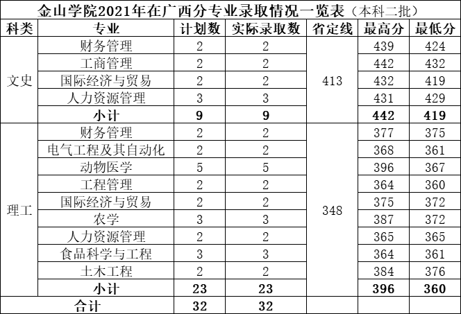 原标题:2021年福建农林大学金山学院广西分专业录取情况一览表(图)