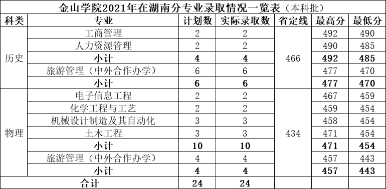 2021年福建农林大学金山学院在湖南分专业录取情况一览表(图)