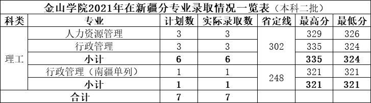 2021年福建农林大学金山学院在新疆分专业录取情况一览表(图)