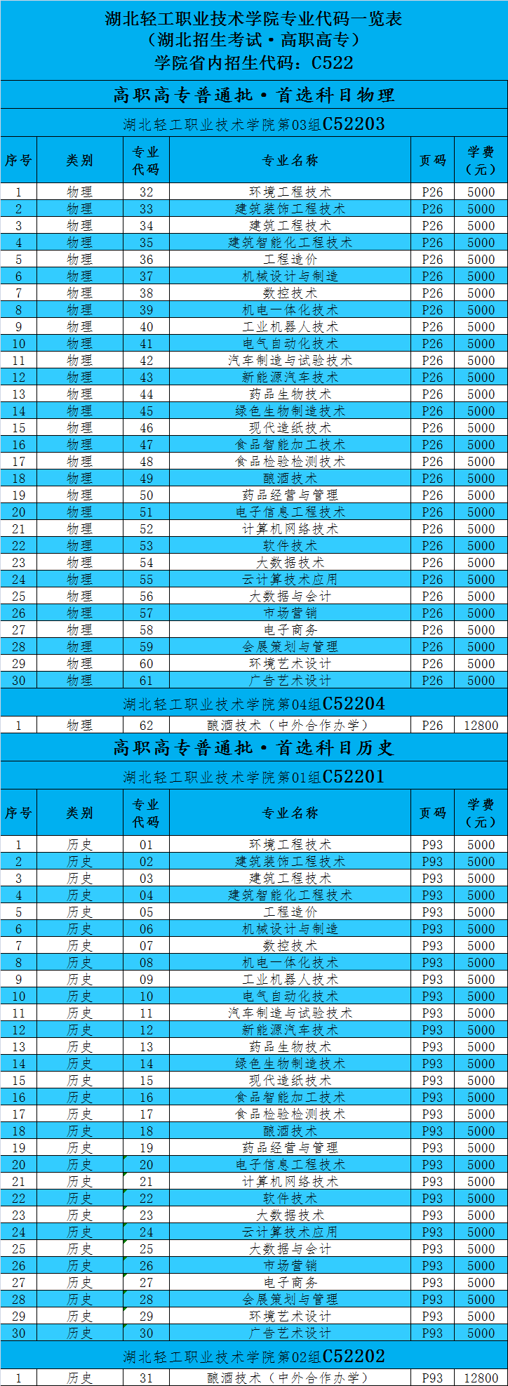 2021年湖北轻工职业技术学院省内志愿填报学校代码及专业代码(第二阶段普通批:8月8日—8月11日)(图)