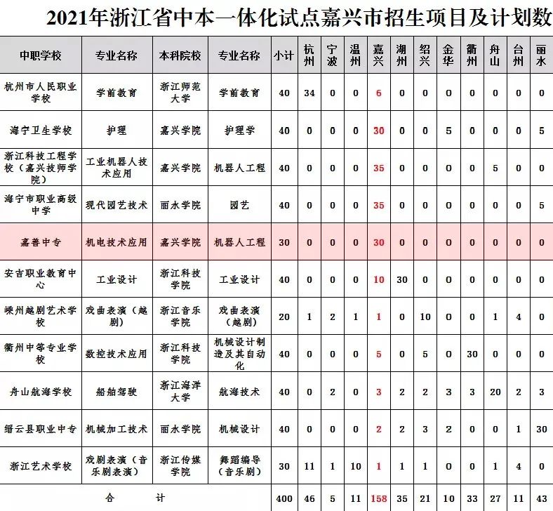 经省教育厅核准,共有11所试点中职学校面向嘉兴市招生,计划招收学生158人。