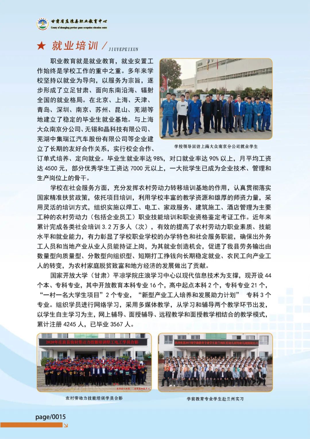 2021年平凉工程技术学校(庄浪县职教中心)招生简章(图)