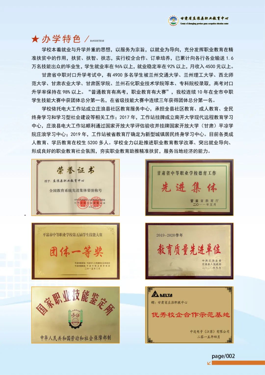 平凉工程技术学校(庄浪县职教中心)学校荣誉