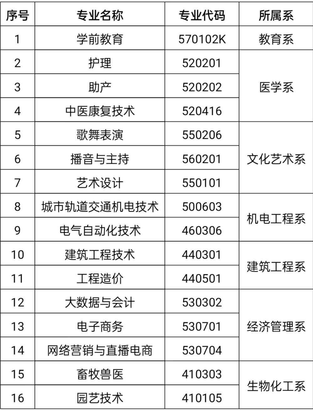 | 5 | 歌舞表演 | 550206 | 文化艺术系 |