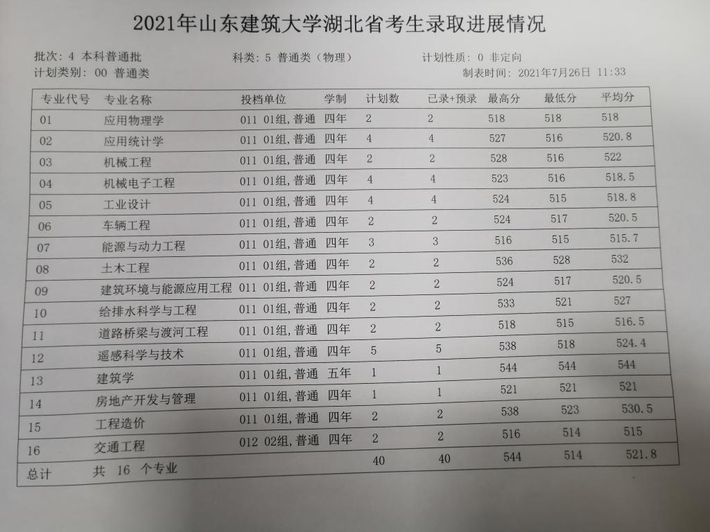 原标题:2021年山东建筑大学高考录取分数线(湖北)(图)