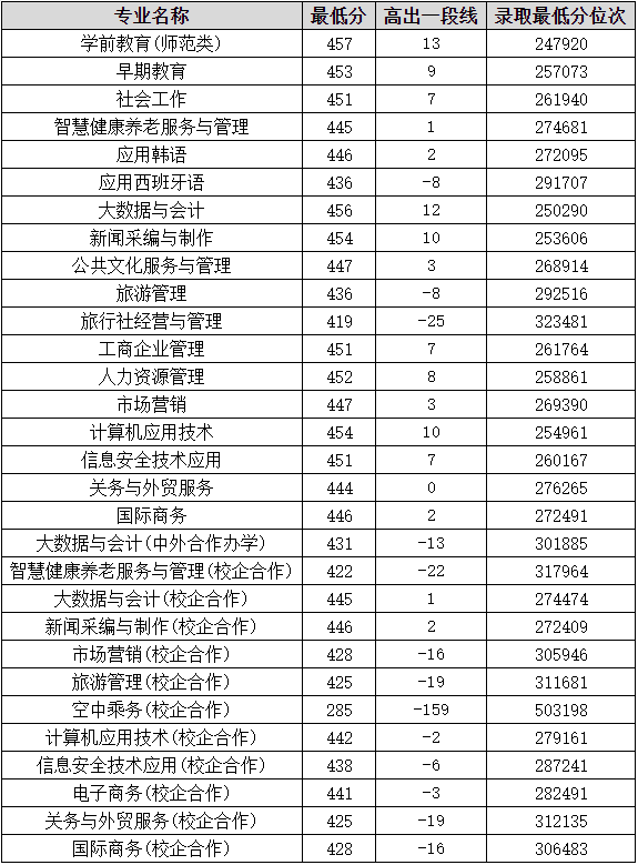 2021年山东女子学院山东省大专各专业录取分数情况(图)