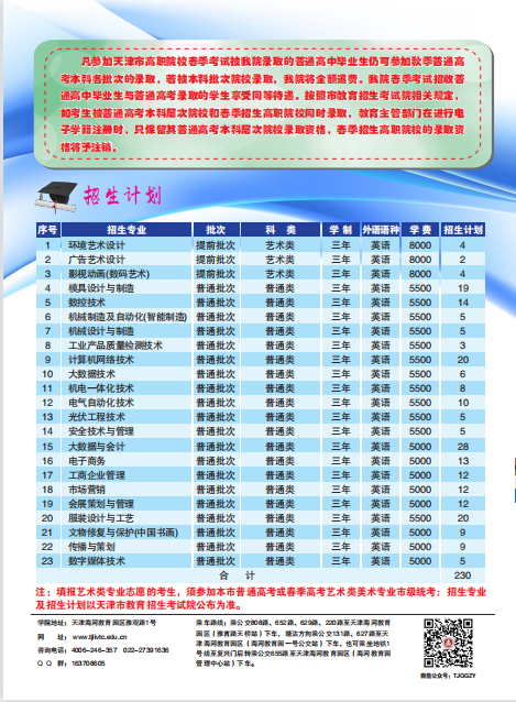 2022年天津轻工职业技术学院春季考试招收普通高中毕业生招生简章(图)