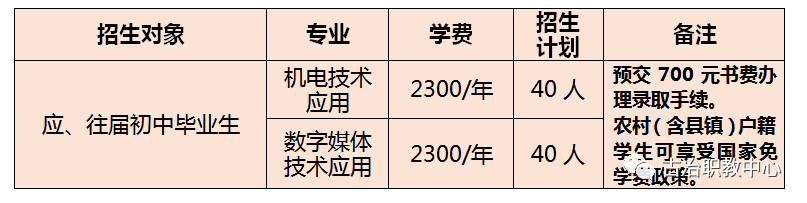 备注:各县区初中毕业生均可报名。农村(含县镇)户籍学生可享受国家免学费政策。
