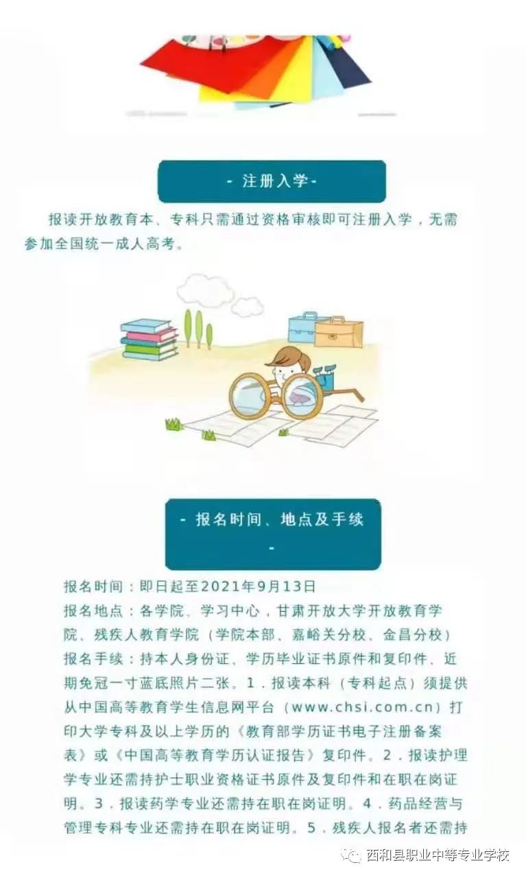 原标题:2021年西和职业中等专业学校专科、本科招生通知(图)