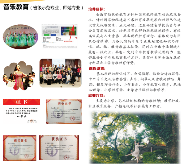 2017年福建幼儿师范高等专科学校五年制高职艺术类师范音乐教育专业(福建省高职高专示范专业)