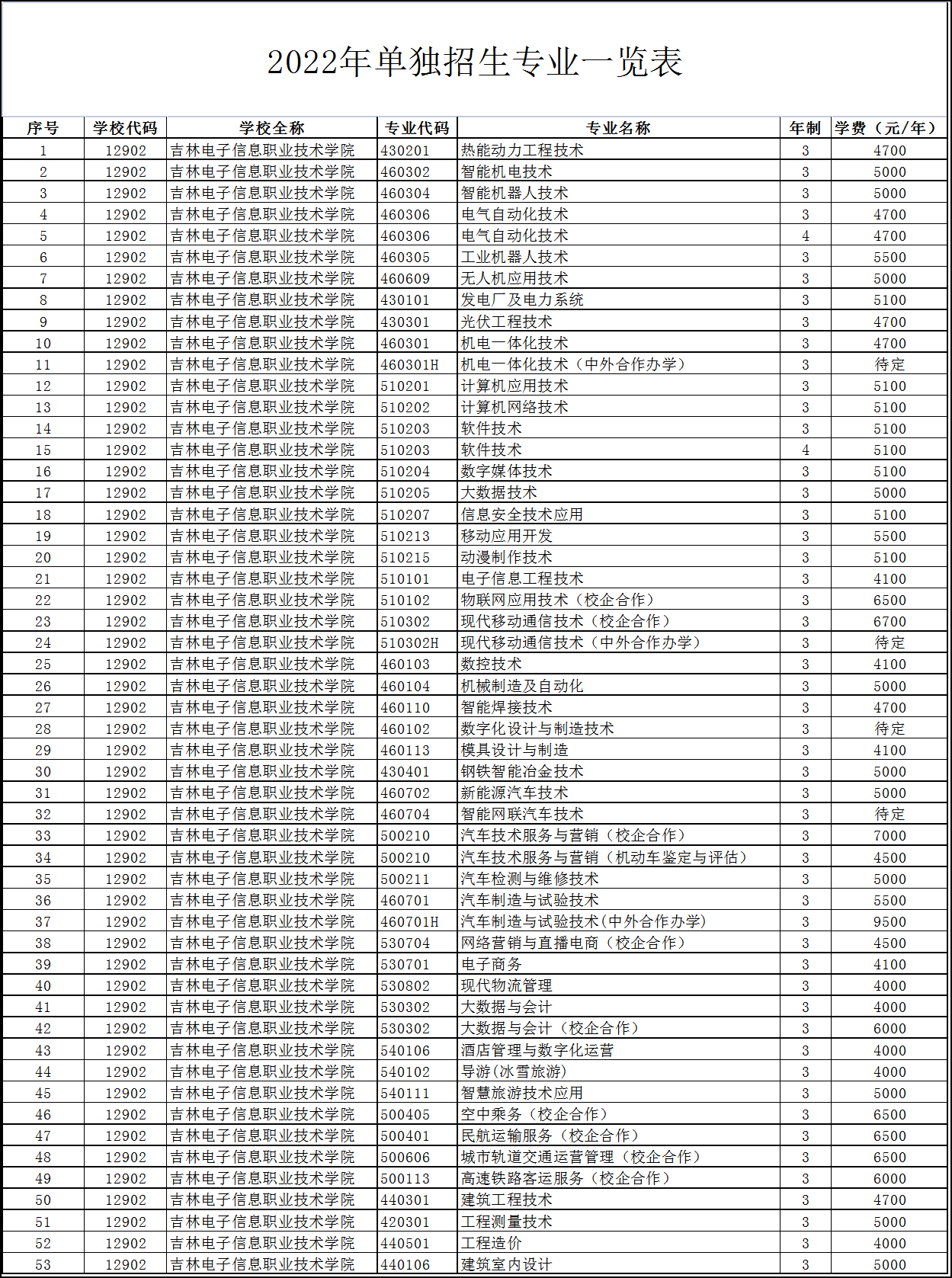 原标题:2022年吉林电子信息职业技术学院单独招生专业一览表(图)
