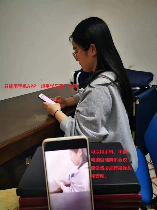 2.要求准备好带摄像和网络功能的智能手机2部,其中一部手机安装“超星学习通APP”用于线上答题;另一部手机(可用电脑或平板替代)安装“腾讯会议APP”用于监控考试环境。分别进行调试,确保“超星学习通APP”、“腾讯会议APP”、摄像头、麦克风和音频等可正常使用。